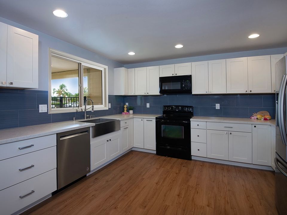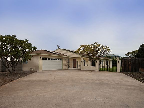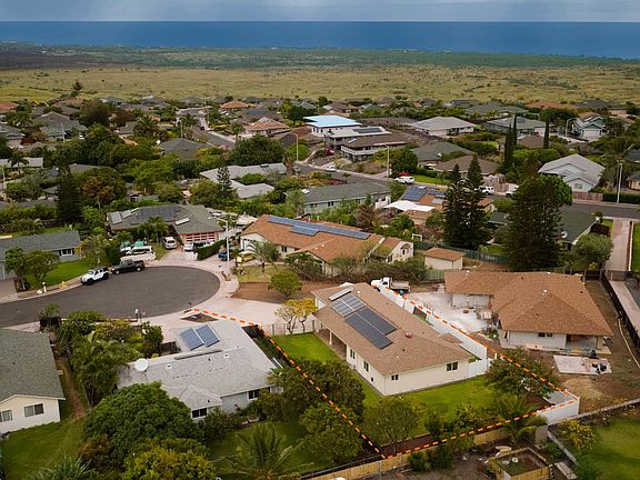 The kitchen was recently remodeled with quartz countertops, slow closing cabinets, an under-mount sink and stunning oversized blue tiled backsplash. Luxury vinyl plank flooring is consistent throughout main living areas and bedrooms, further enhancing the flow of the home. The over-sized primary bedroom has a slider door out to the lanai, along with a walk-in closest and an ensuite bathroom. The other two bedrooms are connected by a Jack and Jill bathroom. Guests and family will enjoy waking up to views of Mauna Kea and Kohala in the bedrooms! The half bathroom in the hallway is a nice accommodation to the layout of this home, especially when entertaining. The home is cooled off by two Fujitsu Split A/C units, one in the primary bedroom and one in the vaulted living room. Don’t worry though, you’ll enjoy low electricity bills with 8-owned and 16-leased solar panels, a back up Tesla battery and solar hot water. While views of Mauna Kea, Hualalai and Kohala can be seen from inside this welcoming home, outside in the fenced in backyard, are thriving fruit trees. The trees produce wonderful grapefruit, lemons, oranges and variegated hybrid limes. Imagine picking fresh grapefruit for breakfast and then enjoying it on the lanai! The property is nicely fenced in and one side opens up enough to get a truck or boat through.