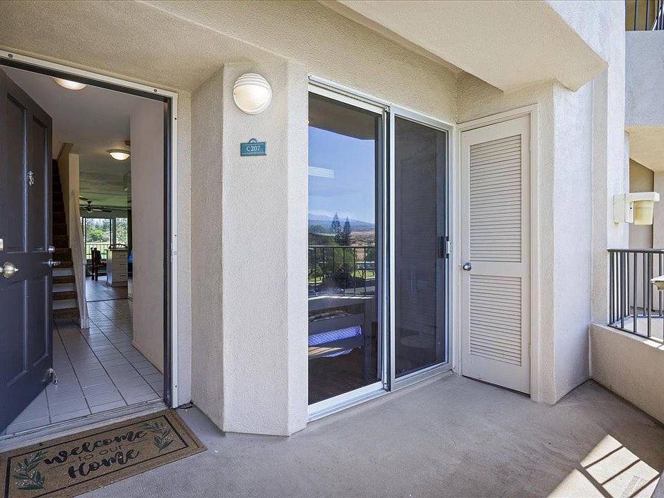 This lovely 3 bedroom 3 bathroom condo overlooks the 2nd Fairway at Waikoloa Village Golf Course and Kohala Mtn.. New Kitchen installed 2022 including new cabinets, quartz counter tops, new stove and microwave and new luxury vinyl plank flooring on the first floor. Also new water heater installed in 2022. STVR permit in place for vacation rentals. Turnkey furnished. 2 assigned parking stalls and unit conveniently located across from the swimming pool, hot tub, exercise room. tennis court and pickleball court. Barbecues at each end of C Bldg and additional barbecues at rec center adjacent the pool. Lanais off each bedroom, living room and entry. One bedroom and bathroom downstairs and 2 bedrooms and 2 bathrooms upstairs. Lots of storage space as well as an attic accessed with an attic ladder.