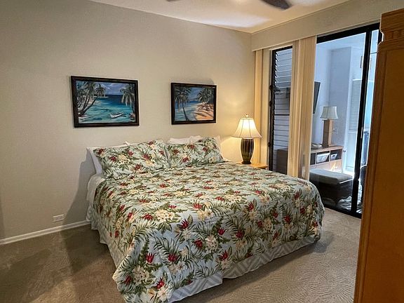 Offered by Big Island Living - Hawaiis4me: Welcome home to a beautiful second floor condo that is fully furnished, has newer carpet in the bedrooms and has an enclosed lanai. This condo's lanai faces the golf course with some trees so you have some privacy. Inside you'll find two bedrooms, each with an attached bathroom, and a half bathroom in the entry hallway. Each bedroom also has a sliding door to the lanai. The primary bathroom has a soaking tub along with a separate shower. The kitchen is open to the dining room. Washer/dryer in the condo. Even comes with some beach chairs and pool noodles. Beautiful paint colors and furnishings make this condo feel like home! Just bring your clothes as there are plates, glassware, utensils, linens. Available immediately for a month to month lease. Rent is $3300 + GET = $3456 Cable/wifi is included, one parking space, pool. This is a gated condo complex at the end of the cul-de-sac near the community tennis courts and pool. No animals, no smoking. There is NO A/C. Tenant responsible for electric. *Rent is $3300 + GET = $3456 *Tenant responsible for electric. *Cable/wifi is included, one parking space, pool. *This is a gated condo complex at the end of the cul-de-sac near the community tennis courts and pool. *No animals, no smoking. *Upon moveout, tenant is responsible for having condo professionally cleaned including carpet, upholstery and mattresses.