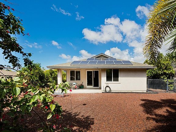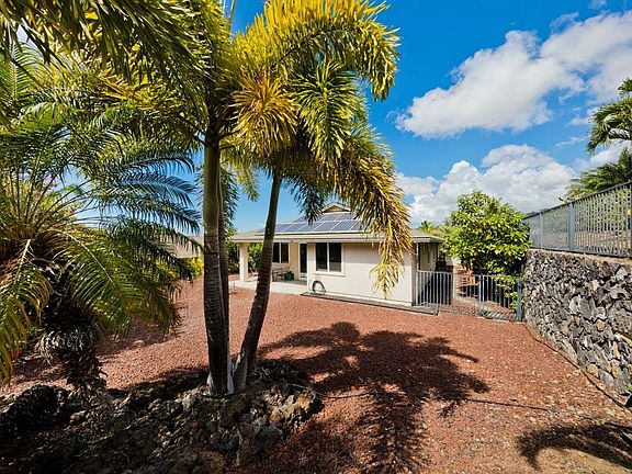 Welcome home to this well cared for 3 bedroom 2 bath Home located in a cul-de-sac in Sunset Ridge Waikoloa Village. Home has Solar that is owned and is Bright and Airy with an open floor plan into the Dining, and living area. Kitchen with Stainless Steel Appliances and Solid Surface Countertops throughout with pantry. A 2 car garage with plenty of storage and a Laundry area. Master bedroom with walk in closed, an ensuite bathroom. Beautiful 10 ft glass sliding doors right out to the lanai area with an impeccable yard full of gorgeous foliage and fruit trees.