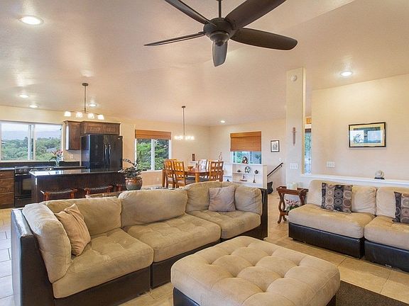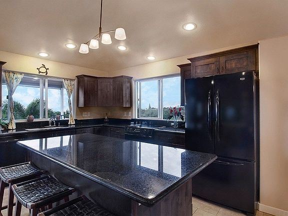 This spacious two level home has a Master Suite on each floor. Great room opens out to spacious lanai that spans the western length of the home for awesome sunsets year long with Kohala Mountain and ocean horizon views. Enjoy looking out toward Maui from your kitchen sink and stove! Upper Master suite has over sized walk in shower and walk in closet. There are two other bedrooms upstairs that share a hall bath. The lower level has a private entrance with spacious family room, wet bar, 2nd master bedroom and bath. Sliding glass door off the living area leads to another covered lanai with the same great sunset and mountain views!Access the beautiful landscaped grounds with 13,771 sq ft of manicured lawn and tropical fruits and shrubbery from both upper or lower lanai. Back yard has great privacy looking out over a Waikoloa Village green space. Cul de sac creates a triangular shaped over sized lot with a 10 ' gate leading to a large storage area for a boat or toys. This home also has a solar water heating system and a 12 panel photo voltaic system that is owned outright and keeps electric bills at a minimum. Waikoloa Village Community offers great amenities for $70/mo such as Golf, swimming pool, tennis courts, stables and community meeting rooms. Enjoy shopping right there in the village or drive just 15 minutes toward the Gold coast to either the Waikoloa or Mauna Lani Resort with Restaurants and shops. Several of the greatest beaches in the world are just minutes away.