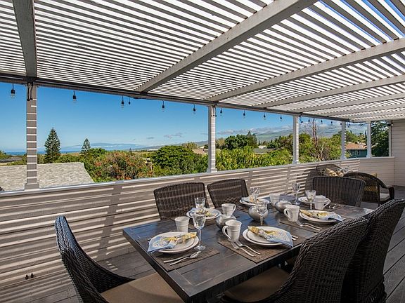 Ocean and Maui views from almost every room in the house! This custom, updated 3 bedroom, 2 bathroom home features an open living area with hardwood floors, a thoughtfully renovated chef's kitchen —with an expansive island, stainless gas range, quartz counter tops, farmhouse sink, pantry, and more. In addition there is a spacious primary suite with access to the lanai, an upgraded en-suite bathroom complete with a luxurious oversize shower, dual sinks, and modern finishes. The split bedroom floor plan allows for privacy with the primary suite on one side of the living area, and 2 additional bedrooms and a bathroom on the opposite side, for guests, children, or home office space.