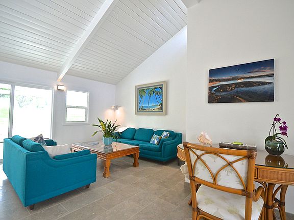 This home was totally remodeled inside in 2016. There is Solar which is on the NEM agreement. This means that your electricity bills will be very low. The NEM agreement will transfer to the new owner. House has air conditioning in both bedrooms and the living room. The kitchen has all new stainless steel appliances and custom cabinets. Convection oven and microwave. Gas stove for cooking. Electric on demand water heater. It is an open concept with vaulted ceilings home. Very clean and modern looking. Only ten minutes from Waikoloa Beach and Mauna Lani shopping centers and beaches. Only about 30 minutes from Kona International airport. For the past 3 years the home was used as a vacation rental. It was a really good vacation rental due to its location on the golf course and because we have air conditioning. This home is very easy to keep clean and the property is low maintenance. The lot is a pretty good size lot which means that there is still room for improvement for this house. You could turn the garage into another bedroom and then add a garage just to the left of where the garage is now. This would still leave you a good size front yard.