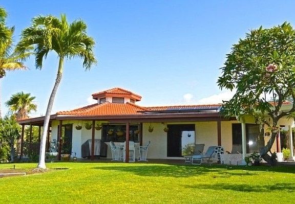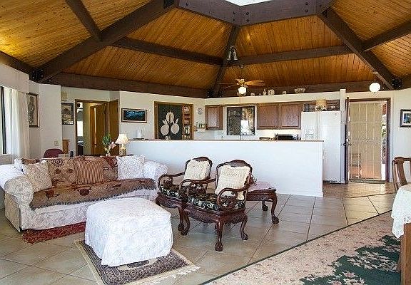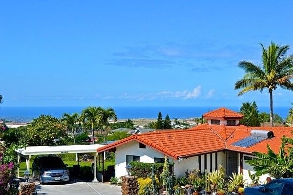 This unique home in a private quiet location with the best ocean views from Maui to Kona. Many upgrades to this home include a new two car carport in addition to an existing two car garage, recently installed photovoltaic system as well as solar hot water. The Monet tile roof is impervious to the elements. Mature landscaping graces the yard and there is room for a pool installation. The home is perched on a bank above Pakanu Road with open non develop Waikoloa Village association land in front. Generous Mauna Kea views are also visible from this home. The home is built with expansive wood beams, knotty pine ceiling with skylights. Ocean views can be seen from every room and the large covered tile lanai is ideal for entertaining or simple relaxation. Work from home in your own proved office, with extensive ocean views. The hexagonal family room connects the kitchen, dining and living room, all with open views to the ocean. The master bedroom is set to the side and apart from the two additional bedrooms. It includes an oversize walk in closet and a separate office area. (These additions were not permitted and do not reflect on the listed sq. footage. Actual sq. footage is approx. 200sf more than County building records.) The kitchen is an integral part of the family living room and dining area all in a unique hexagonal pattern for optimal space utilization. The kitchen interior has been recently painted with new Oak cabinet doors and Corrian counter tops and pantry. Bathrooms have Kohler sinks and Grohe fixtures. The quality of this well built home is evident upon entry. The home was built in 1986. Most important is that if you are looking for that amazing one of a kind Waikoloa ocean view, this home and its location can not be duplicated.