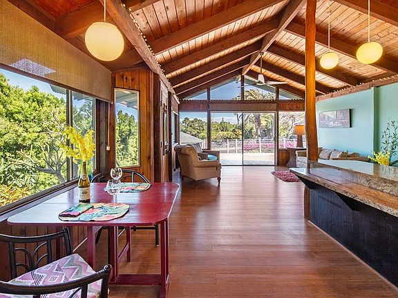The main house is 1236 sf. Not including the expansive front lanai of 566 sf with Kohala Mountain anf peek a boo ocean views.