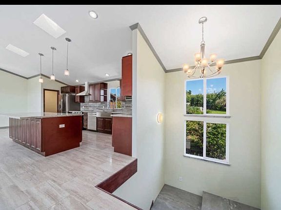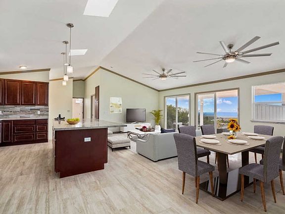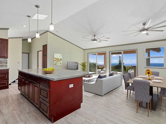 Two story Island style custom home. New construction and very close to finish! Architect designed to maximize ocean views in living spaces which are centered on the second floor.Builder : Blue Pacific ConstructionArchitect: Keith A. Architects Inc. Kailua-KonaThe natural stone in the flexible entry room opens to a grand staircase leading you to the upstairs living spaces, en suite master bedroom, one guest bedroom, and a full custom tiled bathroom. Sweeping views from the kitchen, living room, dining room ,both upstairs bedrooms, and from a covered lanai, complete with a mini kitchen to entertain and enjoy Hawaii's famous sunsets. Skylights enhance natural light. The first floor features two bedrooms, one gorgeous tiled full bath, wet bar, sliding door to first story covered lanai and a door direct to spacious garage complete with built in cabinets for a fabulous work station.Attached garage can be accessed from first floor hallway. Spacious to accommodate two vehicles with work station with custom built cabinetry.Home features included:3 skylightsSolar water heaterLiving footage 2240 sqft.Garage 520 sqft.2 Lanai 224 soft. each for low maintenance.3 walk in closetsCream travertine tile on the second floorMarble floor tile on the first floor3 full baths with tiled wallsWet bar downstairs in family roomMini kitchen on second floor lanaiStainless steel appliances throughoutGranite window sills and kitchen islandCustom cabinets in garageHuge kitchen with granite island kitchenTall walls first floorVaulted ceiling 2nd floorWired for future pool and ACCat 5 wired. 3 outlets for networkingOffice with buttons off the kitchen