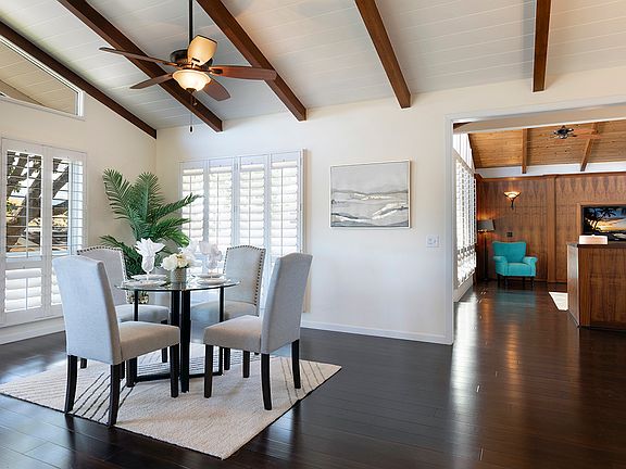 Escape to your private paradise with this stunning home, where modern elegance meets island charm! Step inside to find an open-concept kitchen and living area with eye-catching exposed beams, expansive windows that flood the space with natural light, and engineered hardwood flooring in the main living areas and bedrooms, adding warmth and sophistication. The bonus room features durable LVT flooring, perfect for a variety of uses.