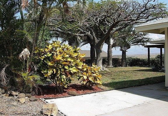 Renovated, 3 bedroom, 2 bath, home with high end fixtures, tile and wood flooring throughout, fully enclosed garage and solar hot water in a very private end of cul-de-sac location. Enjoy the ocean, mountain, and sunset views from 2 covered lanais and a shaded lawn with mature coconut and fruit trees. There are no Waikoloa Village Association dues for this home.