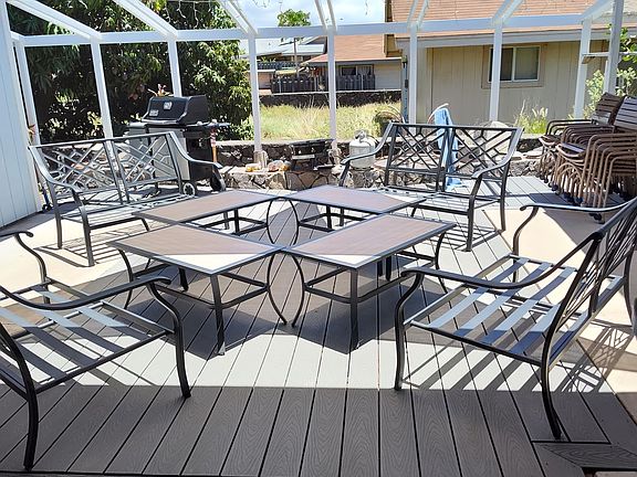 Wonderful starter home in Waikoloa Village! Located in the Paniolo Estates, where there is no HOA fees or CC&R's. This is one of the largest homes in the community with over 1739 sqft of living space. Nicely appointed kitchen with electric range/oven, Dishwasher and Fridge, built in spice rack and lots of cabinets. Two spacious bedrooms and two remodeled bathrooms. Fully owned solar panels with Tesla wall batteries tied to the grid, 5 split air conditioners to keep things cool. Solar hot water heater. PLUS 2 large bonus rooms that could hold many purposes! 2 attic access for extra storage with drop down ladder/stairs. Beautiful courtyard with Trex flooring and a lanai shade cover. Partially fenced yard with fruit trees and tropical landscaping.