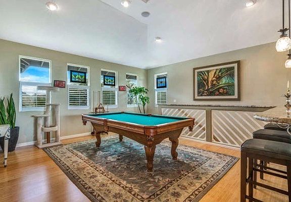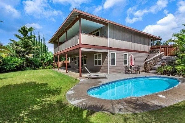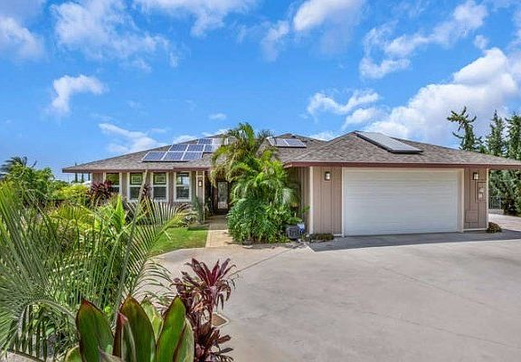 This is not your typical Waikoloa Village home! Find your Paradise in this well built custom home. This Gorgeous home has everything you could want in a Home in Paradise. The main living area is accessed with no stairs and is over 1900 sqft with a large open kitchen appointed with Sapele Wood Cabinets, granite counter tops, propane stove, pantry and opens to a dining area plus large lanai making it perfect for entertaining. The Oversized Master Bedroom with walk in closet and luxurious bathroom with Travertine Floors was designed to block out the noise from the main home. Upstairs also has a living room and large game room or den. Bamboo floors run throughout the main living areas, carpet in the bedrooms and a Central Vacuum System. The Photo-Voltaic System has 25 panels and is fully paid for on the old net metering system to keep your electric costs low. Seller built the home with extra large over hangs to keep the sun and heat to a minimum. Downstairs living area is approximately 943 sqft has 2 bedrooms and large den/living area. The downstairs opens to a large lanai and beautifully landscaped back yard complete with Lava Rock walls surrounding the yard providing privacy for the heated salt water pool and out door activities. The downstairs has its own private driveway and 1 car garage. The downstairs garage/storage/workshop is approximately 840 sqft and could be used for storage, a workshop or whatever you desire. Home sits high on the lot and gives you a feeling of privacy inside and out. Furniture could be negotiable.