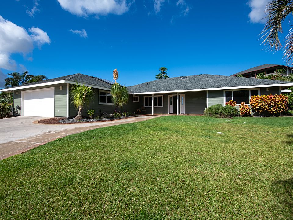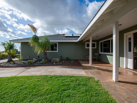 NEW PRICE! This beautiful home located on a large private lot has been recently painted inside and out, providing a clean and fresh feeling. As you enter the home, you are welcomed with an oversized great room, high ceilings, natural light skylights, Bamboo wood flooring, and an open concept kitchen featuring Granite countertops and Stainless Steel appliances. The Photovoltaic solar system has NET metering (which is no longer available on Island) for great savings on electrical bills. The oversized 2 car garage has built in storage lockers and multiple windows. Enjoy outdoor dining on the private lanai. The large grassy front yard with automatic irrigation system is set among mature landscaping creating lots of privacy. Enjoy fresh fruit from the multiple fruit trees in the rear of the home.