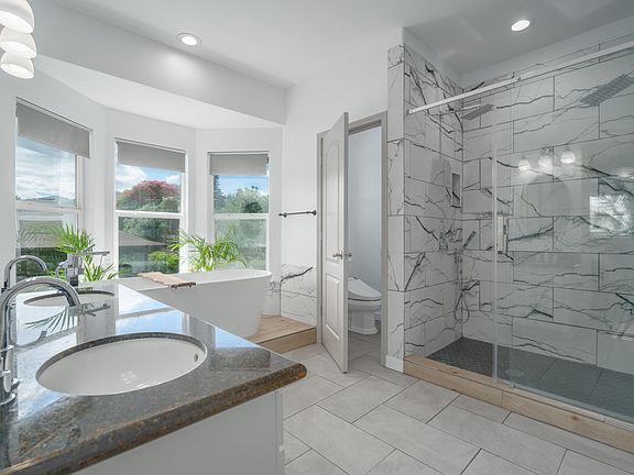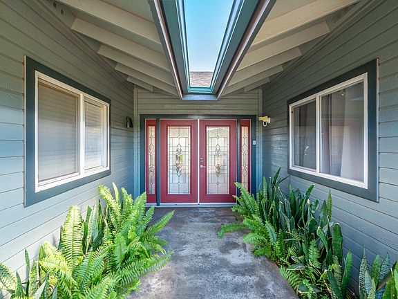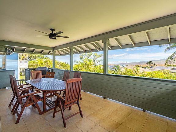 The mauka wing holds the primary suite with recently remodeled bath having a dual head huge walk in shower and soaking tub. Dual sinks eliminate dueling for sinks. Walk in closet. The second and third bedrooms that share a full bath complete this wing. Bathroom and hall lit by Solar tubes that let in natural light.