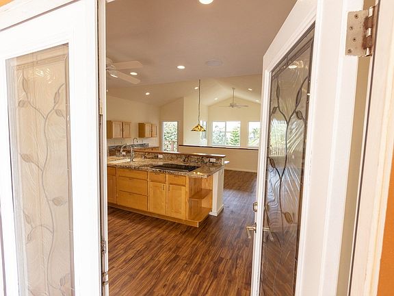 Large Price Reduction! This beautiful ocean-facing home has recently been improved with new flooring and carpet, new interior paint, new interior doors and other touches. The home is light and bright with a layout that allows for it to feel more spacious than it's square footage indicates. Master bedroom/bathroom and family/office area on one side, two bedrooms and a bathroom on the other, with kitchen, dining and living area in-between them. The large covered lanai is great for enjoying Hawaii's perfect year-round weather and sunsets. Speakers are built-in throughout the home.