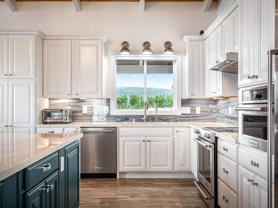 A 1200 sq foot lanai permits relaxed, coastal entertainment with views of the Kohala Coast to take in magnificent sunset views or simply unwind in the 6 person hot tub. Quartz countertops and updated fixtures with vinyl planking decorate the immaculate kitchen with a view out the south-side bay window. The master suite features wood furniture and bed framing to match the flooring throughout with private access to the outdoor landscaping.
