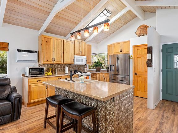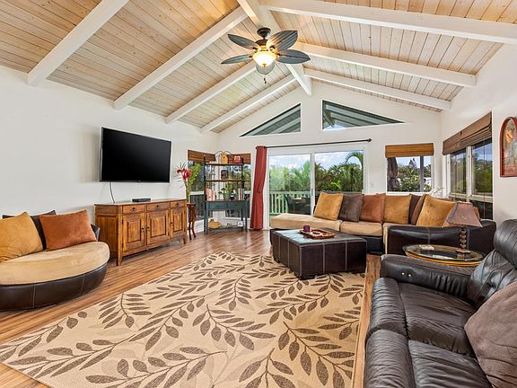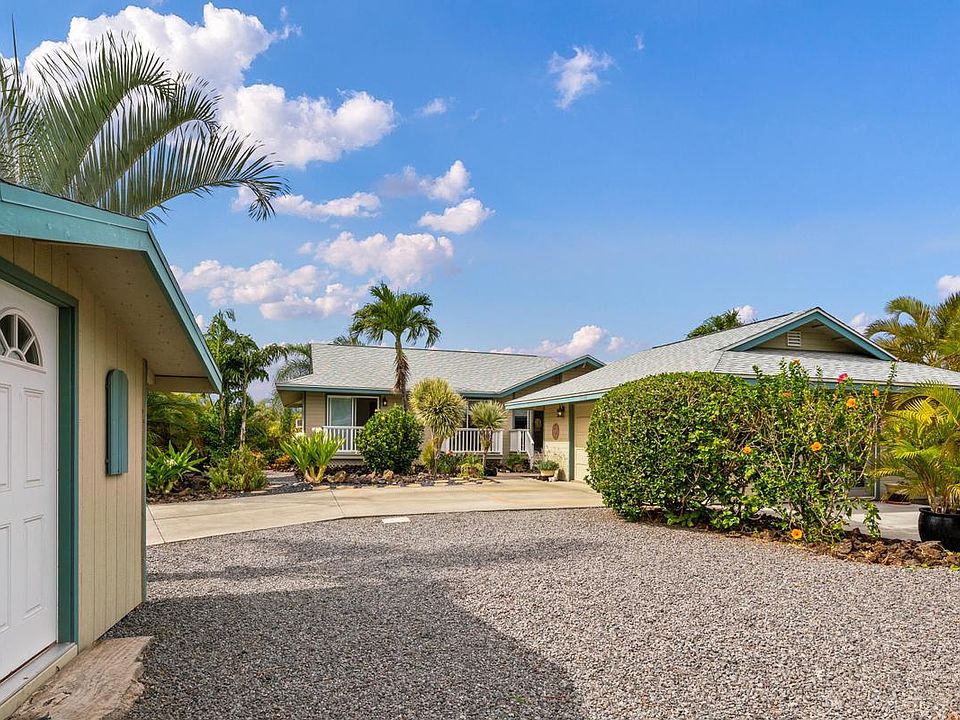 Unique & beautifully maintained Waikoloa Village home on a quiet cul-de-sac w/ large private corner lot. The floor to ceiling windows, vaulted exposed beam ceiling creates a living space filled w/ natural light. Spacious lanai is surrounded by fruit trees & your own botanical garden, ‘you’ll find yourself living in an oasis of aloha.’