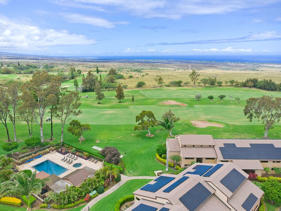 Discover the perfect blend of modern luxury, convenience, and resort-style living in this fully upgraded 2-bedroom, 2-bathroom townhome in Waikoloa Villas. Nestled on the 9th fairway of the Robert Trent Jones Jr. Waikoloa Village Golf Course, this move-in-ready home offers expansive green space, ocean and sunset vistas!
