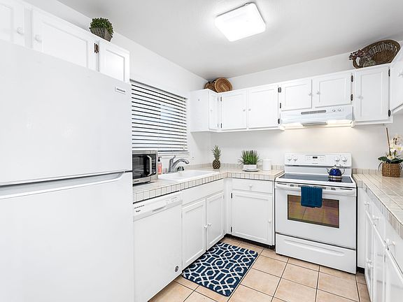Wood laminate flooring in the living areas creates a rich look. Tiled floors in the kitchen and baths make cleaning up a breeze. Ceiling fans in the main rooms keep the air flowing for good circulation. Ample closets throughout the unit offer lots of storage. A stacking washer/dryer and water heater share their own closet. Unit is being sold partially furnished.