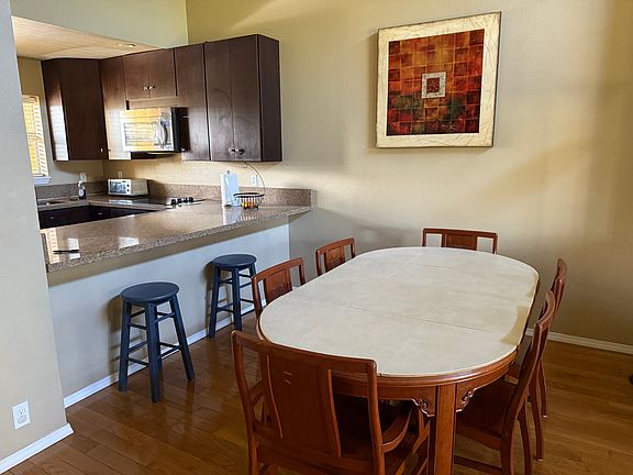 2 Bedroom 2 bath condo One designated parking stall Washer dryer in unit available for use Fully furnished Water included Tenant responsible for electric/wifi/cable Conveniently located across from shopping center Pool/hot tub on site 6 month to 1 year lease required