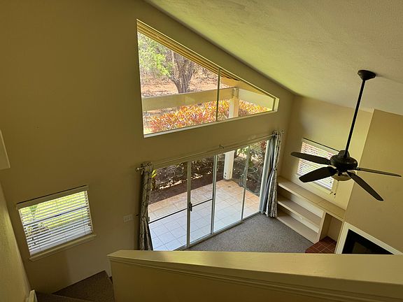 For rent is a two story condo with two bedrooms and two bathrooms upstairs. Living area, dining and kitchen on main floor. Two sliding doors for access to the outside. Main lanai faces nice green space with some privacy. Kitchen sits at the front of the condo with an opening to the dining room. Living room has vaulted ceilings. Fireplace is for show. Upstairs you have a guest room, hallway bathroom and laundry. The main bedroom sits at the front with an attached bathroom. Each bedroom has sliders that open up for fresh air. Condo comes with one assigned parking space. Street parking available for a second vehicle as there is no other guest parking. This condo is located in Waikoloa Village, across from a gas station, KTA grocery store and restaurants. *Application required prior to viewing the condo* Tenant pays for electric, cable/wifi. Trash and water is included. Pool on site. Complex does not allow pets and no smoking in the condo or on property. Smoking allowed off site. Carpets are to be professionally cleaned upon moveout. Lease is for 6+ months.