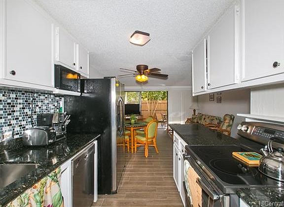 Available January 1, 2018. Beautifully renovated ground floor one bedroom one bath condo, fully furnished with Hawaiiana style furnishing. Condo equipped with all major appliances including washer/dryer, range/oven, refrigerator and dishwasher. Unit comes with one assigned parking and additonal parking on street. Building has tiled pool, sauna, and beach access across the street. Aweoweo Beach Park with basketball courts, jungle gym, bike path and bus line nearby, minutes to historic Haleiwa town, shopping, restaurants, pharmacy, championship golf and surf breaks, 40 minutes to HNL International airport. Utilities included: Cable TV, high speed internet, water and electricity ($75 Cap) Rent: $1,950/mo. + 4.712% GET, and 9.25% TAT (TAT applicable for under 6 months Rental Term)