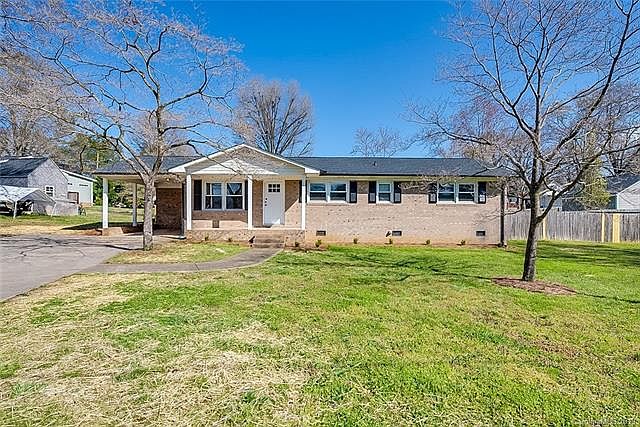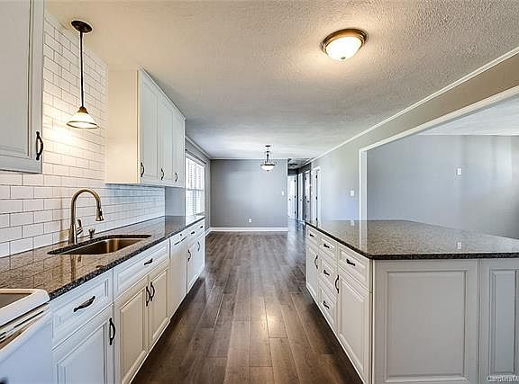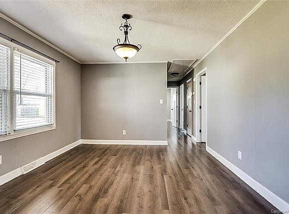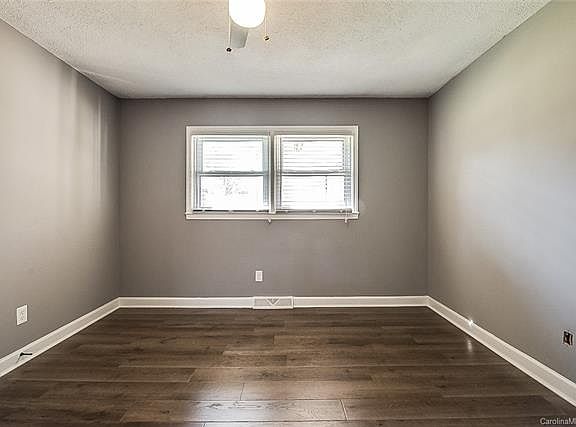 This Concord one-story offers an open floorplan, ceiling fans, and granite countertops in the kitchen.