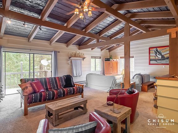Hidden from the road, 68 Alpine Lake Way is the perfect mountain escape! This house sits on a .53 acre lot, and is just a few minutes away from Monte Verde Lake, where there is fishing, paddle boarding, boating and other summer activities to be enjoyed. Upon entry, you will find a split two story home. The kitchen contains stainless steel appliances, tile counters with tile backsplash and a wood burning fireplace in the corner of the attached dining room. You will also find the laundry room on this level. Going up, you will enter the living room with 2 separate sitting areas, one situated around the rock fireplace, and the other around the TV opposite the fireplace. The ceiling is comprised of dark wood with light accent beams. Going downstairs, you will find the master bedroom with ensuite bathroom, along with the other two bedrooms and another full bath. The house has a back patio off of the kitchen, and a deck off of the living room; both are perfect to enjoy during different times of the day as the sun moves across the southern sky. There is also a shed built under the deck perfect for storing tools and skis. This house comes fully furnished and is ready for you and the family to make into your mountain home!