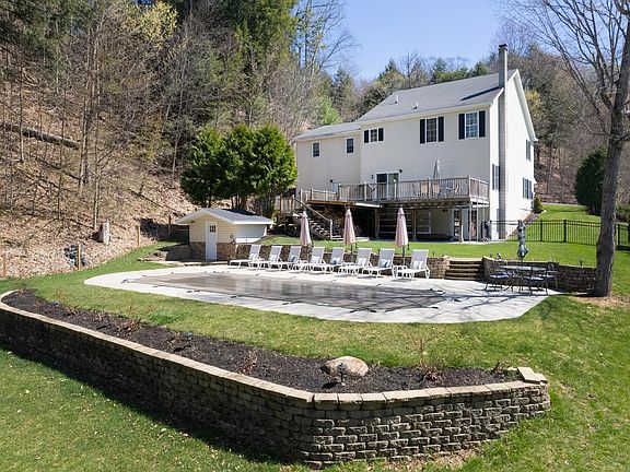 Quiet Rutland Town location featuring a dead-end street and bordering woods makes this is a very desirable location. Colonial style home built in 2009 featuring 4100 sq. ft. boasts high ceilings and an open floor plan. An exceptional kitchen with gorgeous wood cabinetry, upgraded counters, a huge walk-in pantry, center island, and a breakfast bar for quick meals is perfect for your busy family. Gleaming hardwood flooring throughout the living and dining rooms and a propane fireplace adding to the room's ambiance. The second floor hosts a primary suite featuring a luxury bath with a walk-in shower, tub, jacuzzi tub, and two oversized vanities. Two other nicely sized family bedrooms, another full bath, and a dream of a laundry room. Enjoy two large bonus rooms and an office to use however suits your family's needs. The lower level is outfitted for true enjoyment and entertainment. Large TV room and wet bar featuring a beverage frig, dishwasher, sink, Belly up to the bar and create memories of a lifetime. Enjoy another full bath with additional dyer for your pool towels. This 1.4-acre parcel is an oasis with a stunning in-ground pool installed in 2018, a cabana with a bathroom, a basketball court with lights, and a shed to store everything. The black fencing adds a touch of class to the yard. Rutland Town has a highly rated elementary school, busing, and choice options for high school, a town pool, and minutes up to the slopes. LIVE VERMONT AND WELCOME HOME.