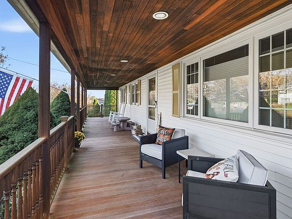 This one-level ranch has it all. 3 bedrooms on main level 4th bedroom, office, den in lower level. Loads of storage. hardwood floors eat in kitchen, family room with fireplace with pellet stove or can be used as a dining room, sun room with sliders to deck overlooking the private newly fenced in backyard. sit on the covered front 8ft X 46ft mahogany deck. 3 car garage new central air in 2020. updated main bathroom in 2020, installed the new larger windows in 2021. chimney re-crowned in 2021 newer roof, all new blinds in 2019. Huge master bedroom with hardwood floors. his and her closets and tiled full bath with jacuzzi tub and separate shower. nice 3 season sunroom with sliders with deck So much to see on a level lot.