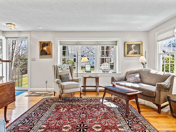 Falmouth Foreside: Nestled in a tree lined corner of the Applegate community, this impeccable end unit home features clean lines throughout with glistening hardwood flooring, wood fireplace, large living and dining rooms, move in ready with updated replacement windows, a Trex Deck leading out to nearby conservation land an trail system. A community garden is nearby. This sought after 55+ community is extremely well maintained. The attached garage has a direct entry automatic door opener. OPEN HOUSE Saturday & Sunday 10:00am - 1:00pm. Offers due by Tuesday at 6:00pm (4/30)