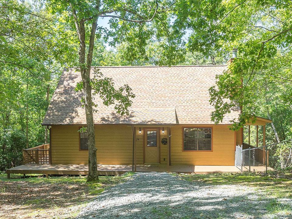 Escape to your own private oasis with this charming cabin situated on 1.12 acres with creek. This furnished cozy cabin is truly a haven for tranquility seekers and adventure enthusiasts alike. As you step inside the main living area features a cozy fireplace creating a warm and inviting ambiance that is perfect for curling up with a good book or gathering around with loved ones on those chilly mountain evenings. The living area seamlessly flows into the fully equipped kitchen where delicious meals are prepared while memories are created. The main floor features 2 bedrooms and full bath. Upstairs a loft area provides additional space for relaxation or can be converted into an office or studio to suit your needs. But perhaps one of the most enchanting aspects of this cabin are the decks. Great space for entertaining friends and family or relax and let all your worries melt away and enjoy the serenity that only nature can provide. Meander down the tranquil path that leads you to the gentle babbling creek. Sit on the bench along the creek which provides relaxation. Community common area along the Nottely River with a pond, pavilion and BBQ area. COME LIVE THE SIMPLE LIFE!!