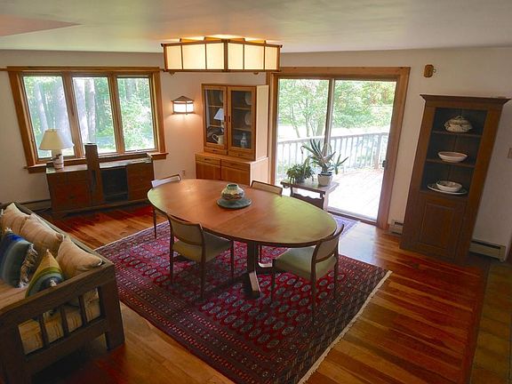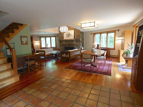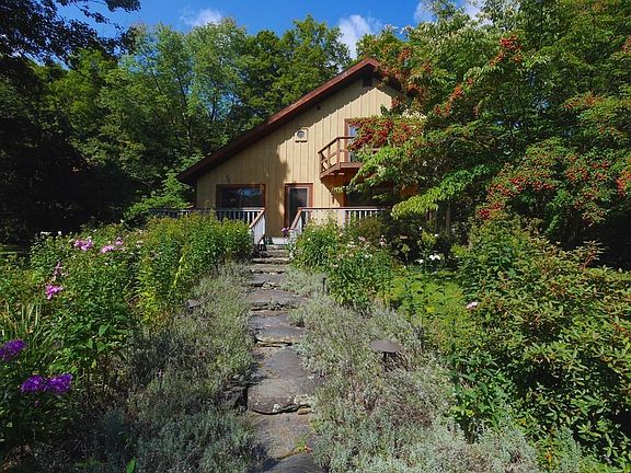 Looking to get away from the city? Tucked away on a winding road in Heath, a well-known haven for writers/artists/musicians by the Berkshires, the design inspiration for this 4 bed/3.5 bath custom Contemporary can be seen in details like port holes and brass features accenting rich woodwork. A rustic stone walkway beckons you into the main level of this open concept home featuring a generous great room with vaulted ceilings and a soaring stone fire place, 2 full bathrooms (one with walk-in tub/shower), bedroom, sep. entry foyer and the conservatory - a striking space with beamed vaulted ceilings, cherry floors & windows galore offering lovely vistas. 3 beds/1.5 baths upstairs plus views of the great room from interior 'windows' and balcony. Main BR with priv. bath (walk-in shower) has an outdoor balcony overlooking the deck. A 19.9 ac sanctuary with stone walls, perennials, trails, a brook. Located by hiking/biking/skiing. Easy drive to restaurants, cultural & educational institutions.