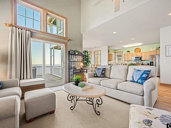 This well maintained, NEVER RENTED, fully furnished, pristine SOUNDFRONT home in the coveted neighborhood of Village Landings will not last! Complete with 4 bedrooms, 3.5 baths, large lower-level game room, enclosed garage, newer SS appliances, gas fireplace, 9' and cathedral ceilings, custom window treatments throughout, new carpet, LVT and LVP flooring, newer interior and exterior paint,  this 2800 square foot home is a must see! Outdoor shower, picnic area, grill, and boat dock are all located ground level. The multi-level decking features 180-degree sound views and stunning sunrises. The oversized master suite has a large walk-in closet with a separate owner's closet, jetted tub, with separate shower, and a private deck to enjoy the views! Heat pumps replaced 2018 and 2020.This home is in an X flood zone. No flood insurance is required. Located in the gated community of Pirate's Cove, amenities include - 2 swimming pools, club house, playground, outdoor pavilion, volleyball and basketball court, tennis courts, fitness center, on-site restaurant, ships store, and 4 miles of perimeter docking for fishing or your walking pleasure. Slip #81 located in the Ballast Point Canal will be available to a qualified boat owner. The golf cart located in the garage is for sale for $5,000.