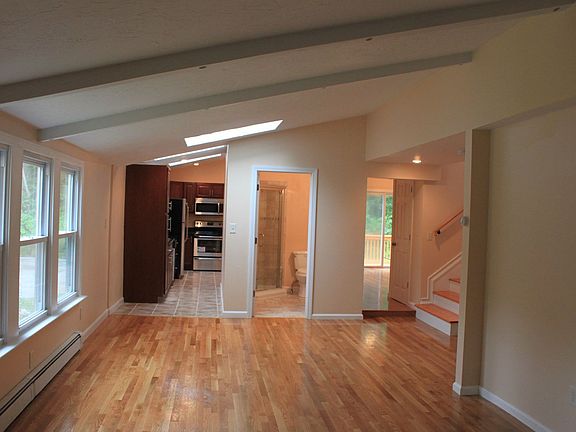WOW... BUY ME!!!!! Completely updated contemporary home. Cathedral ceilings, skylights, first floor master suite with private bath, hardwood floors, kitchen with granite countertops and stainless appliances. Walls of glass. Very private setting with hidden courtyard area part of professionally landscaped acre of land. Running/biking trail off the back yard. New roof, window, heating system. Nothing to do by move in and enjoy! Neighborhood Description Dead end street, quiet