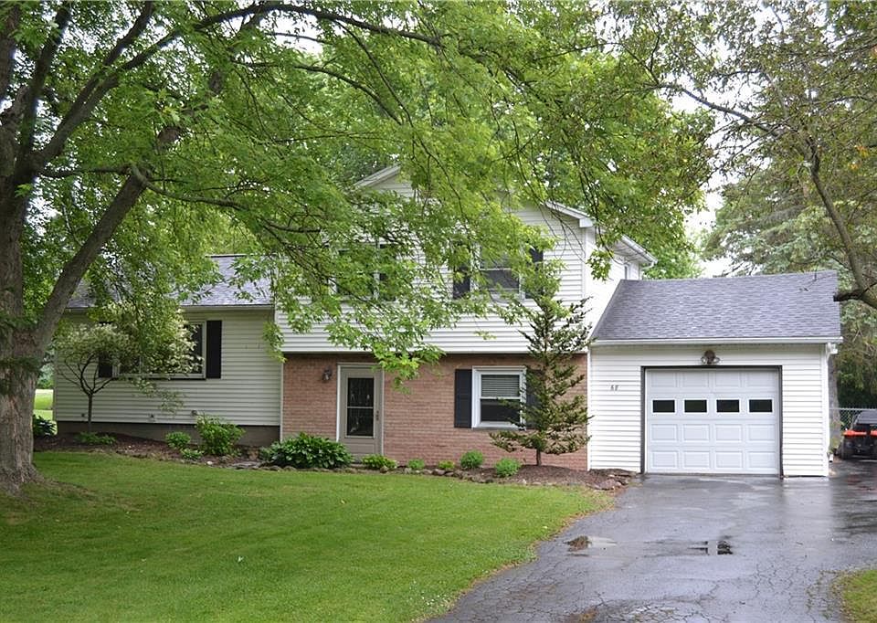 Split level home with spacious center entrance in Churchville-Chili school district. First floor offers a family room, large full bath with whirlpool tub and separate shower, large laundry room and mud room with a door to the back yard. Second level has nice size kitchen, with newer appliances and 1 full bath. 3rd floor offers 3 bedrooms and full bathroom. Basement has been finished with new flooring and drop ceiling's. Large back yard, a swing set, and is fenced in. Deck off kitchen has new vinyl railings. Roof was a tear off in 2017. Home is well cared for.