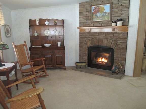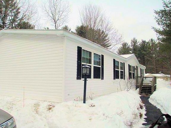 Beautiful, Spacious ,Bright,Open Concept. This 1680' double wide built with 2x6 construction in 2003 is located in the Mountainvale Village a 55 plus Community. Home boast cathedral ceilings, gas fireplace, ceiling fans through-out home,central air, large deck off the laundry room and dining room both which look out over the back yard and woods for a private retreat. You need to see just how large the kitchen is with solid wood cabinets, skylights, ceiling fan, built-in desk area, island and still room for a kitchen table. New water heater, well maintained inside and out!