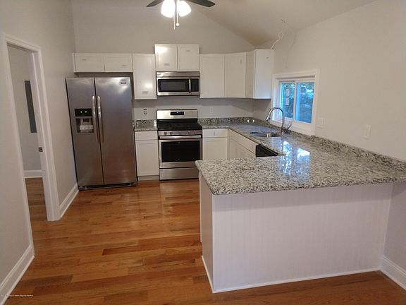 Beautifully remodeled ranch in Barnegat Beach. This home was completely renovated and is a newly rebuilt home. 100% of the electric and plumbing is new in 2019, along with the windows, roof, siding, HVAC system, kitchen, and baths. Newly added walk in closet and full bathroom in the Master bedroom! The entire home has 12 ft vaulted ceilings and hardwood floors throughout. This property has plenty of room for parking including an attached garage. No flood insurance required on this home, even though it is one block to the marina, and a short walk to the bay. Take advantage of all this beautiful neighborhood has to offer including low cost boat slips and a beautiful Bayfront park!