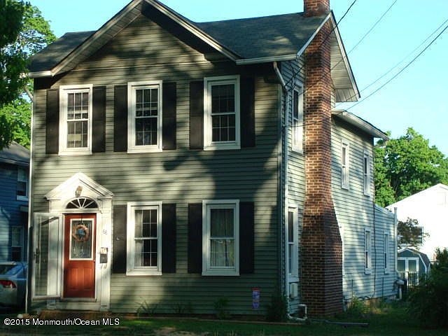 Charming 3 bedroom + small office/1.5 bath in historic Freehold Boro. Wood floors in living and dining rooms, wood burning fire place, eat-in kitchen and laundry on first floor. 2-3 blocks to NYC buses, downtown district with a nice variety of restaurants, shops, banks, etc. Many recently replaced big ticket items such as partial waste and water lines, furnace, hot water heater, dishwasher, main section of roof, significant part of sun porch. Large, private back yard with patio and plenty of room for fun and games : )
