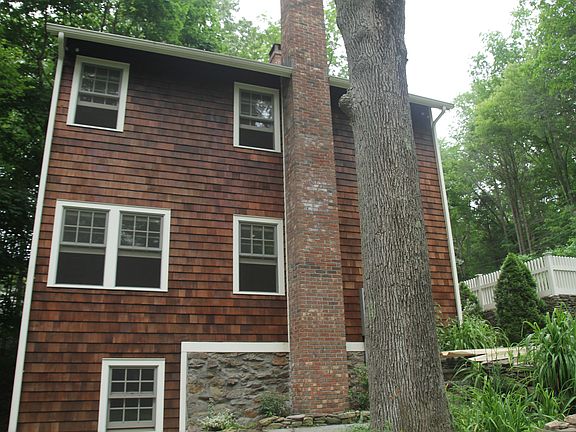 For rent, a lovely 2 bedroom, 1.5 bath home on the banks of the Norwalk River in Wilton. Serene private setting close to town center and walking distance to the Cannondale train station, shops, and restaurant! Approximately 1500 square feet, including a 160 square foot detached office/ studio space. Possible third bedroom on lower level, with French door walk-out to patio! Both upstairs bedrooms feature walk-in closets. Gut renovated in 2002, stainless appliances, upstairs laundry room with washer/ dryer, zoned baseboard heating, central air, intercom system, radiant heat and new carpeting in lower level. Entire house wired for secure Ethernet, cable, and phone. In-ceiling speakers in living room and kitchen. Wonderful patio spaces outside for summer entertaining, working fireplace, many built-in bookcases and shelves, with modern kitchen. Finished pull-down attic, and ground floor utility room, for storage. Small, custom-built garden shed for additional storage. Fresh paint throughout. Landscaping maintenance and trash pickup included. Extensive photos can be seen at: www.cannonroadhouse.com The privacy and "breathing room" of a house, with the low-maintenance lifestyle of an apartment or townhome! Must be seen: The lazy river cruises past the back of the house, with a rushing brook that tumbles down to meet the river beside the patio and detached studio. Minimum one-year lease, first month's rent and 2 month's security deposit required. Apologies, no pets. Tenant responsible for electric, phone, TV, and heating oil. Landlord provides trash pickup, lawn and landscape service. Landlord maintains heating service contract with oil company. APOLOGIES, NO PETS. Tenant responsible for electric, phone, TV, and heating oil. Landlord provides trash pickup, lawn and landscape service. Landlord maintains heating service contract with oil company.