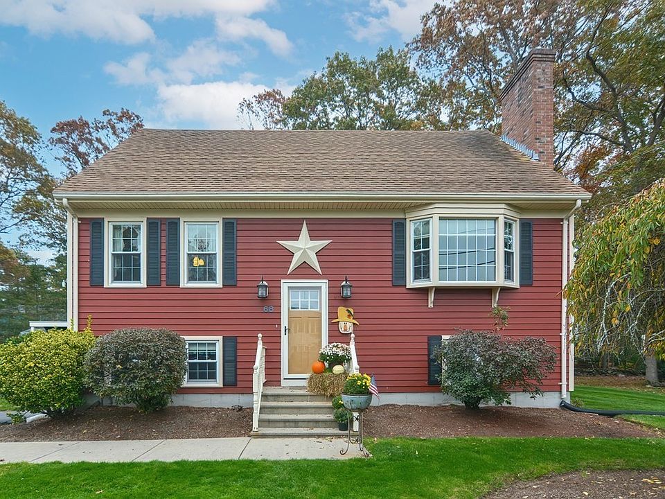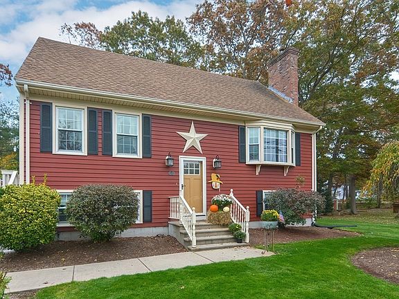 Welcome to your dream home in a highly desirable neighborhood. This charming 4 bed, 2 bath Raised Cape boasts all the features you've been looking for. From the moment you step inside, you'll be captivated by the warm & inviting atmosphere. There's a nice open flow from the updated kitchen, dining area into the cozy living room with fireplace. The 1st floor also includes a bedroom. 2nd floor has 3 more beds including a large primary bedroom w walk-in clst & full bathroom access. One of the unique features of the home is the finished basement, designed with sports enthusiasts in mind. It has been transformed into a Boston Sports Bar, a fantastic space for watching your favorite games, enjoying a drink, & hosting game-day parties. The backyard is an oasis in itself; with a meticulously maintained and manicured lawn; an ideal spot for simply relaxing in the hot tub or gathering around the firepit. Perfect blend of indoor & outdoor living. New boiler, roof approx 10 yrs old. Don't Miss Out