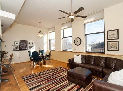 This sun splashed 2 bed/2 bath corner unit is not to be missed! Features include soaring ceilings, large windows, central AC, in unit laundry, & original wood floors. Fully equipped kitchen with stainless steel appliances, gas cooking, granite counters and breakfast bar. Beautifully tiled baths, one en-suite. Ample closets in unit and extra private storage in building. Two assigned parking spaces plus guest parking! Professionally managed building with elevator and intercom conveniences. High owner occupancy. Pet friendly. Express bus just 20 minutes to Downtown Boston and very easy access to Rte 93, Rte 16 & Rte 28. Energy Star Five Award for Efficiency and Prism Award for Best Condominium Conversion.-2007.