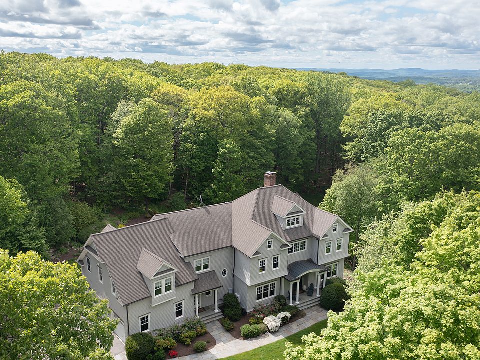 Welcome Home! Exquisite Nantucket Shingle style Colonial residence perfectly sited on 3.15 gated, mature, lush acres and accessed via a crushed stone drive. Over 500K in improvements! Pride of ownership is evident throughout with beautiful exterior lines and outstanding interior floor plan. Gorgeous Shoreline heated saltwater pool with automatic cover and spa + spacious patio creates the perfect outdoor retreat. The home features 9+ foot ceilings throughout, Brazilian cherry floors, unique architectural touches, indoor/outdoor surround sound + plenty of natural light. The heart-and-soul of the home is the kitchen which boasts cherry cabinets, granite counters, top-of-the-line stainless steel appliances, walk-in pantry, large dinette area, wet bar with wine cooler, and large sitting area with additional fireplace. An impressive foyer, formal dining room, living and family rooms with fireplaces, reading nook, mudroom and 2 half baths round out the floor. Upstairs, the serene primary suite includes a spacious bath and large WIC. 2 ensuite bedrooms also reside here, with an add'l bedroom, bonus room, full bath and den available in an attached wing. The lower level is not to be missed! Featuring a guest/in-law suite with full bath, game room with kitchenette, media room & gym, it is accessible to the Southwest facing yard. 3-car garage, EV charger, generator, Zodiac and Jandy Aqua Link for remote pool/spa operation, alarm system, NEST, irrigation system + shed. Welcome Home! Terrific location with easy zip access to backroads for commutes to lower Fairfield and Westchester Counties, plus trains and roadways to NYC. A quick nine-minute drive into the town center with access to countless restaurants, shops, A.C.T of CT, Prospector Theater, Ridgefield Playhouse, Aldrich Contemporary Art Musem, Ridgefield Library, Ballard Park, and more.