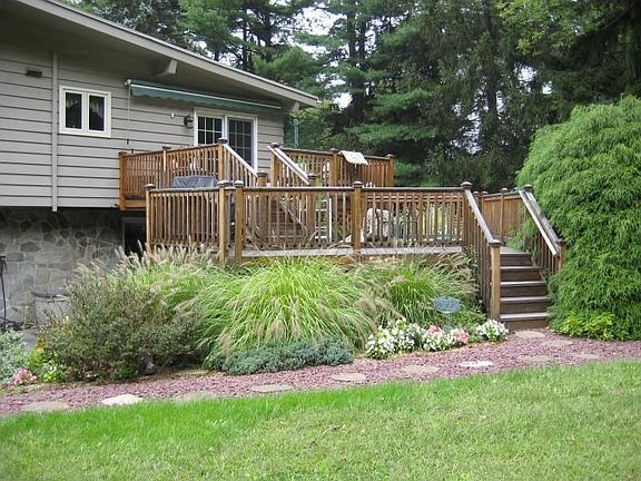 A pleasure to list, this beautiful ranch is loaded with amenities. Kitchen with breakfast bar, granite and tile, Formal Dining Room with sliders to 2-tier deck with retractable awning, LR withstunning stone fireplace, hardwood floors, and large windows. New incredible master bath with granite and oversized tile shower. FR with sliders to backyard and HUGE cedar closet. Septic approximately 1 year old, etc. etc. Too many amenities to list. Bring your fussiest buyer!