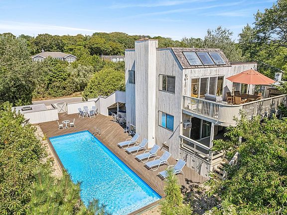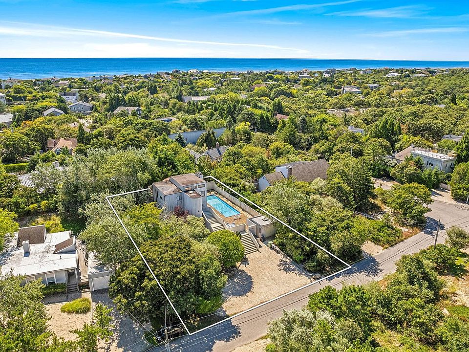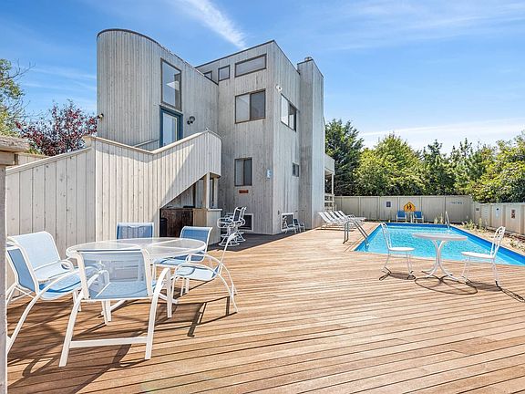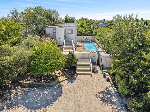 PRICE REDUCTION: LOCATION! LOCATION! IMAGINATION! The just a short stroll to an ocean beach listing you've been waiting for.. Renovate your affordable dream house in the Dunes of Amagansett with a 40' X 12' pool set in a large deck with built-in bar for entertaining. Entire top floor is for entertaining with it's open light-filled great room with high ceilings, fireplace (#1 of 2) and walls of glass sliders that lead onto a good-sized balcony (see Virtual Kitchen Renovation photo & floor plan). Nearly grade level lower floor makes this potentially a three-story home (this sf is not in the sf count - the house can potentially be 2800 sf; by increasing septic and egress to get additional bedrooms to max out the available additional square footage (X Zone). Three bedrooms (primary ensuite with fireplace #2 of 2) 3 1/2 bathrooms has access to a good size covered porch with outdoor shower. Has both Central AC & AC Units. Propane fueled. POTENTIAL! POTENTIAL! POTENTIAL!