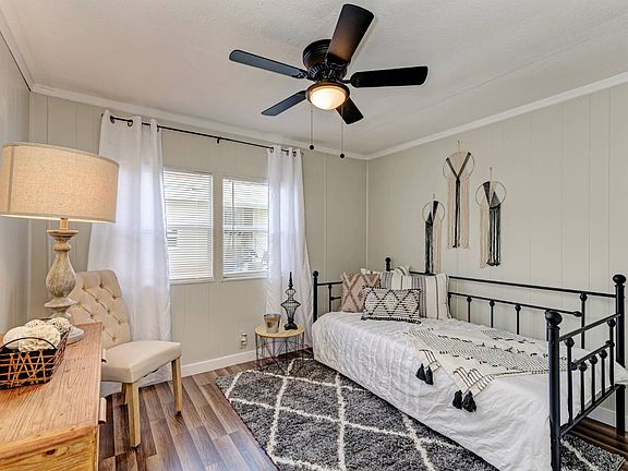 Start living that Florida lifestyle you have always dreamed of in this resort style 55+ FIVE STAR community! This beautiful two bedroom/two bath 1056 sq. ft. home has been freshly updated and is in move-in ready condition. Located in amenity-rich Colony Cove, you'll never need to go very far for recreation or fun. This gorgeous home boasts a spacious brand new stylish kitchen with stainless appliances, built-in pantry, butcher block counters, shaker cabinets and a ceramic backsplash. Both baths have been completely updated and feature designer vanities and stylish flooring. The interior is freshly painted with gleaming new laminate floors throughout. The master bedroom is roomy, has ample closet space, and a built-in desk area. There is a screened side porch for those breezy Florida evenings. The attached shed is huge with more than enough space for a laundry room and storage. More than just a pretty face, this home also has all new lighting and ceiling fans, and exterior entry doors, recent AC service, an updated electrical panel and much more! Located in pet-friendly Colony Cove in Ellenton, you will find more than enough to keep you occupied. Lot rent is about $900 and includes all of the park amenities of Colony Cove: 5 clubhouses, 6 heated pools, a riverfront pavilion and private fishing pier, a private marina, a fenced dog park (very pet friendly), tennis, shuffleboard, new pickleball courts, bocce ball, horseshoes, billiards, library, 2 new fitness rooms, 24 hour patrol, clubs for every interest, water, sewer, tax and garbage collection. Park approval is required. For an additional $10000 this home is also available furnished and turnkey ready with everything you will need to start enjoying life in sunny Florida. Homes like this do not come up very often so grab your suitcase and head to Florida! Photos shown are of an identical property that we just sold. This home will be finished and available the first week of August.
