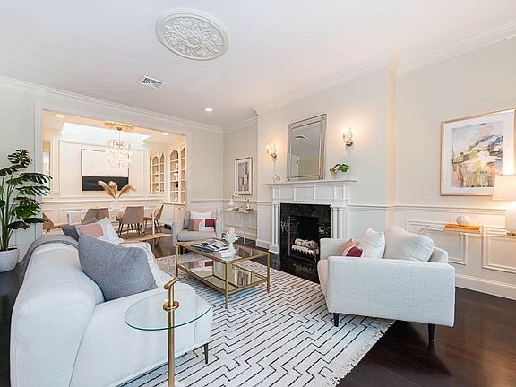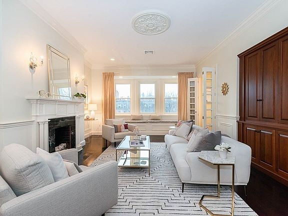 A masterpiece sited on one of Back Bay's most prestigious streets, this 2 BR 2 BA, 1772sf residence showcases timeless grace within a classic brownstone only 1.5 blocks from the Public Garden. A continuity of elements creates a seamless flow while walnut finish hwd & light from 4 skylights set the tone for warmth & elegance. A trio of windows accent the LR, 10' ceilings, FP & gracious doorways. Entertain in the DR w/ a glass chandelier & built-ins. Updated w/ European flair, the kitchen features Thermador & Viking SS appliances, floor-to-ceiling cabinets, granite counters & eat-in banquette. Guest BA w enclosed tub & Waterworks nickel fixtures. Retreat to Primary BR w/ sitting area, built-in desk, marble FP & walk-in closet. Elegant Master BA has a warm marble double vanity, limestone accents, Runtal warmer & frameless shower w/ Eurotherm valve. Panoramic views of the Hancock to Comm Ave Mall from expansive priv roof deck w/ shower & studio. Direct elevator access & deeded prkng space!