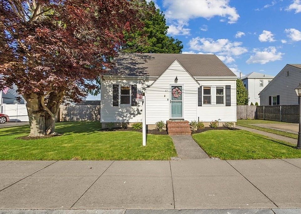 Welcome home to a delightful 3 bed, 1 bath Cape offering 1,330sf of living space. Upon entering, you’re greeted by 8’ ceilings and refinished hardwoods throughout. A cozy living room leads you to an updated eat-in kitchen featuring stainless steel appliances, a gas range, white shaker cabinets, granite countertops, and bright subway tile. Down the hall, you’ll find an updated full bathroom and two bedrooms. The master features a custom walk-in closet. Upstairs you will find a large bedroom with gleaming hardwood floors and bonus storage space. Stretching across the width of the home, you could use this space to create something special. Venture outside to the fenced backyard, complete with a shed, mature trees, and a deck, ideal for relaxation and entertaining. The exterior offers low-maintenance vinyl siding and convenient off-street parking. Nestled on a quiet street in a neighborhood minutes away from local restaurants, parks, and schools, this charming property awaits you!