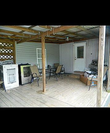 5 bedrooms, 2 full baths located on approx 3.65 Home features laminate and tile flooring, fireplace, covered front porch and a covered patio. Also included is a detached garage with a built in storm shelter. Nice level lot with plenty of room for a garden. Single wide does not have a permanent foundation