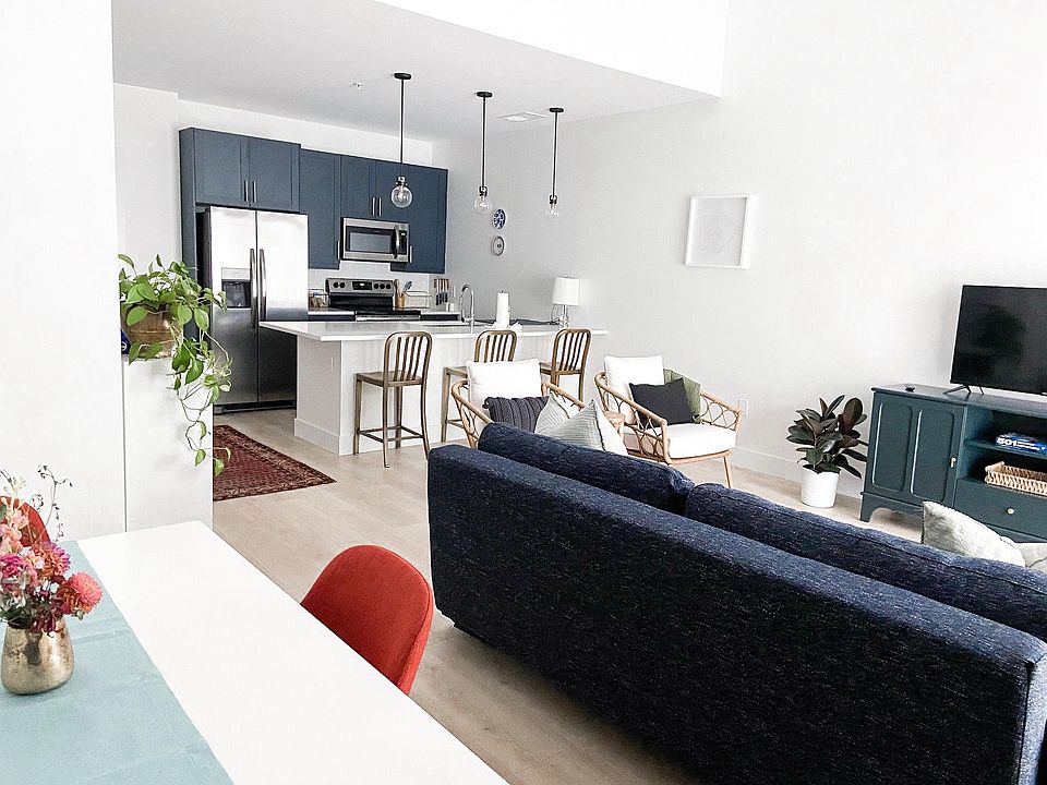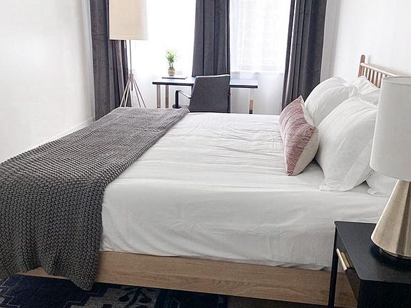 Sparkling Brand New Asheville Live/Work/Play Condo Brand new 1br garden condo, finished September 2022: * Bright and airy 780sf * Soaring 14' ceilings in living area * Furnishings include King size bed with memory foam mattress * Dedicated desk/work area + high speed internet (included in rental) * Large, private patio * Washer/Dryer * Luxury condo building features elevator and secure garage parking (one spot) + bike storage * Steps to New Belgium brewery, 4+ mile greenway, French Broad River access, River Arts District galleries, shops, eateries, grocery stores and more * Fully furnished and uncluttered with plenty of space for your personal items * Featuring art from local Asheville artists and curators * Well behaved pets are welcome! **CONDO AVAILABLE TO LEASE BEGINNING JULY 1** **AVAILABLE FOR SHOWINGS AFTER JUNE 6th ONLY** 1 year lease Owner covers water, trash and high speed internet. You are only responsible for electric NON-SMOKING only, in all indoor and outdoor spaces on the property, please. 2 pets max, no larger than 60 lbs Credit check required via Zillow application