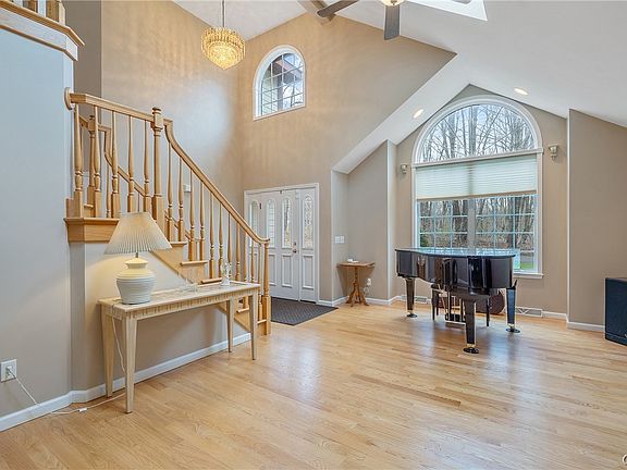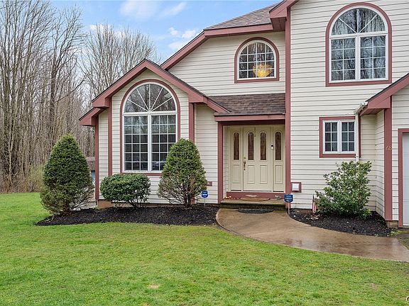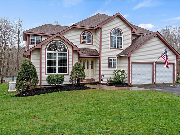 Welcome to this meticulously one owner custom built by the builder himself- crafted 4-bedroom, 2.5-bathroom home where quality & spacious living unite. Nestled at the tranquil end of a private road, this 2,285 sqft transitional 2-story charmer boasts a newly installed roof & abundant natural light. A grand entrance features a striking 2-story foyer with a wooden stairwell that leads to a delightful peek-a-boo spot overlooking the modern eat-in kitchen, equipped with newer appliances. The solid construction underscores an energy-efficient design, complemented by hardwood floors throughout and a cozy wood fireplace in the living room. The finished basement offers extra space for relaxation or entertainment, while the primary bedroom doesn’t skimp on luxury, offering dual walk-in closets and a jetted tub in the ensuite, perfect for unwinding. Outdoor living is equally impressive, with an inground pool set against a wooded backdrop on a generous 5 acre lot, ensuring privacy and serenity. This home marries comfort and convenience being centrally located yet with that country vibe! Experience the lifestyle you have always wanted and deserved in a home built with passion and precision.