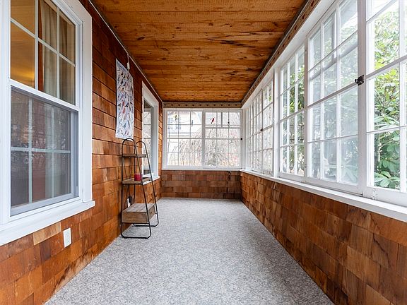 This beautifully maintained 3-bedroom, 1-bath Colonial sits on a wonderful lot and is ready for you to move right in. Step into the inviting three-season porch, featuring charming wooden-pane, swing-open windows—the perfect spot to unwind and enjoy book or cup of coffee. Inside you'll find a sun-filled living room with updated vinyl flooring, ideal for everyday living and entertaining. The dining room offers plenty of space for gatherings, or you can slip out the slider to the large composite deck and relax in the private backyard. The spacious kitchen provides generous cabinet and counter space, making meal prep a breeze. Upstairs, the second floor boasts three well-sized bedrooms with wall-to-wall carpeting and ceiling fans for year-round comfort. The full bathroom features a beautiful wood-paneled ceiling and a linen closet with custom doors, adding both charm and convenience. Extra large storage shed for patio furniture and a vintage soap stone sink in the basement laundry area.